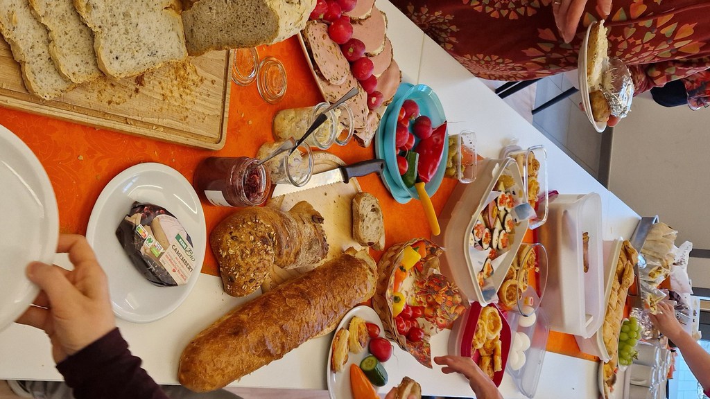 Fürs anschließende Mittagessen teilten wir wie gewohnt belegte Brote und Fingerfood.