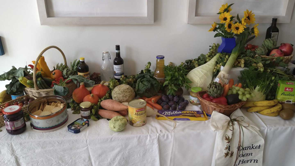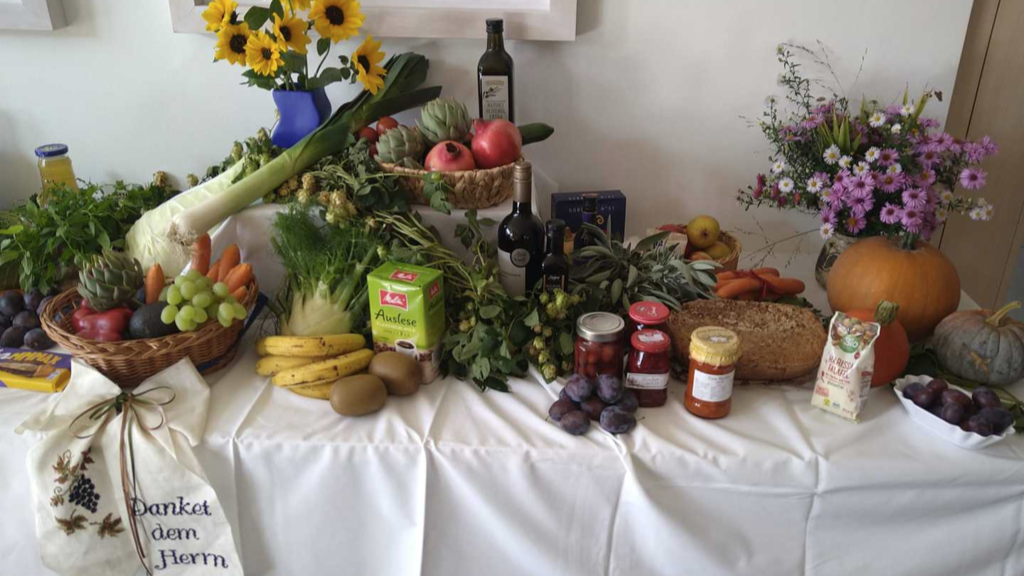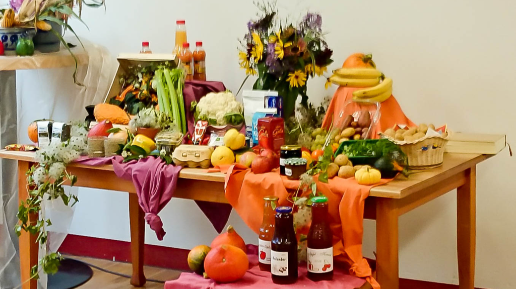 Jeder brachte mit, was er/sie aus Dankbarkeit auf den Tisch legen wollte.