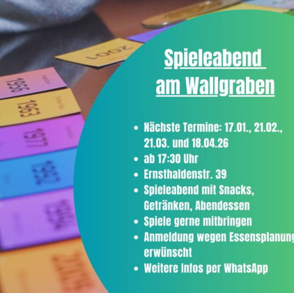 Jeden 3. Samstag im Monat ab 17:30 Uhr möchten wir dich zu einem Spieleabend mit Getränken, Snacks und Abendessen einladen. Bring gerne noch Brettspiele mit, es werden aber auch welche vorhanden sein.
